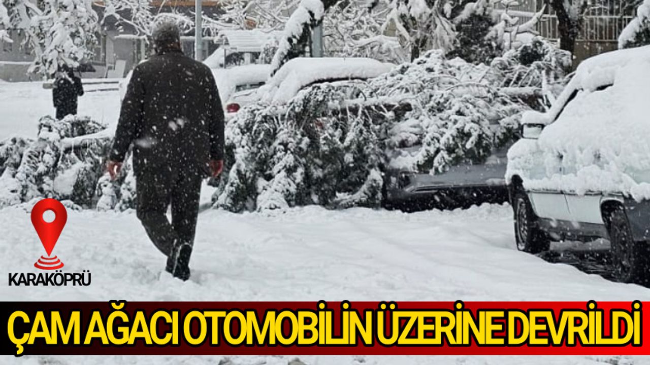Şanlıurfa'da dünden bu yana etkili olan kar yağışı nedeniyle karaköprü ilçesinde bir çam ağacı park halindeki otomobilin üzerine devrildi.