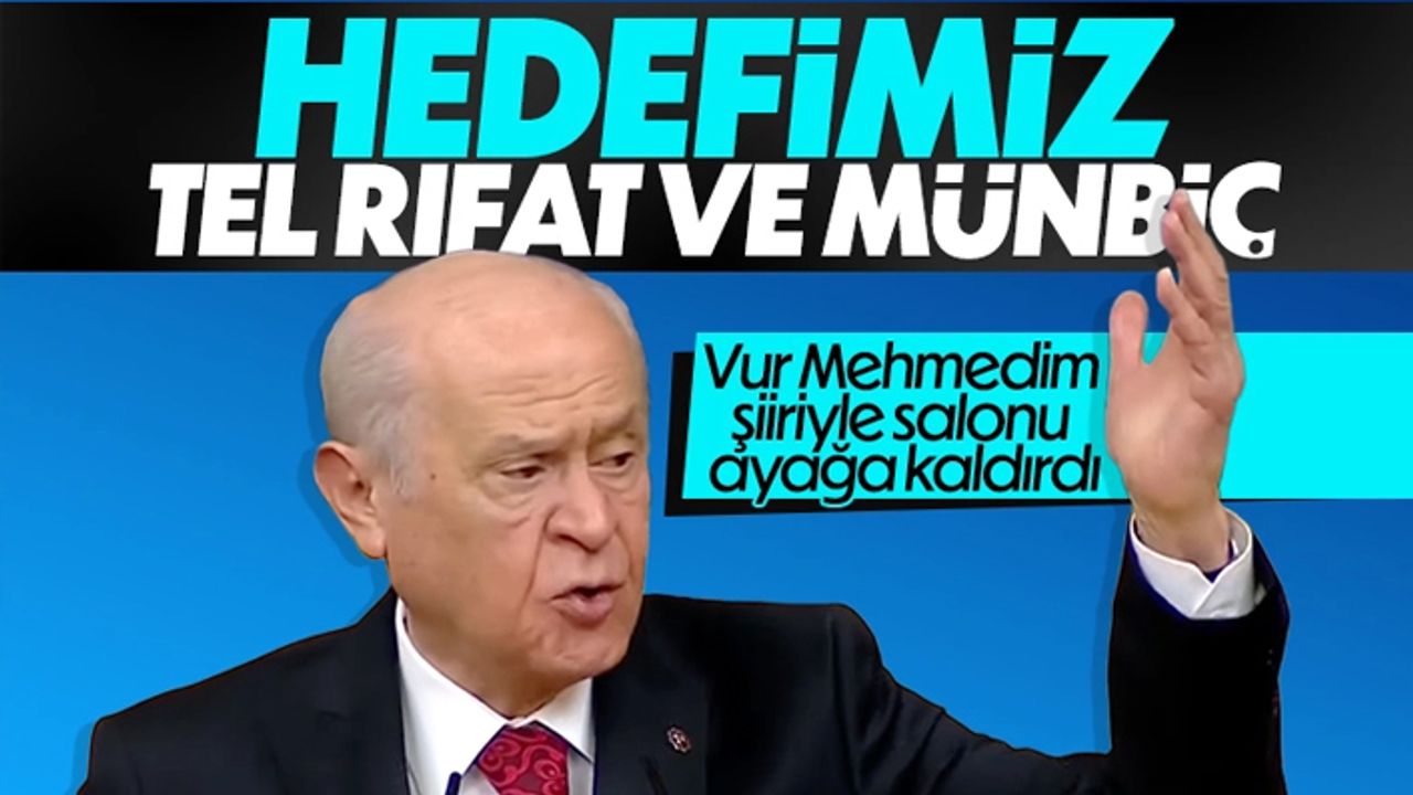 Bahçeli, "Diyorum ki oralar meşru hedeftir. Caniler temizlenmeli, en başta Tel Rıfat ve Münbiç özgürleştirilmelidir." dedi.