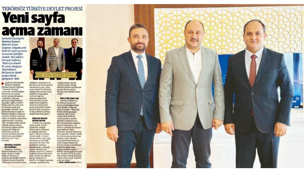 Şanlıurfa Büyükşehir Belediye Başkanı Mehmet Kasım Gülpınar, Yeni Şafak Gazetesi Ankara Temsilcisi Fazlı Şahan ve muhabir Resul Ekrem Şahan’ın gündeme dair sorularını yanıtladı.