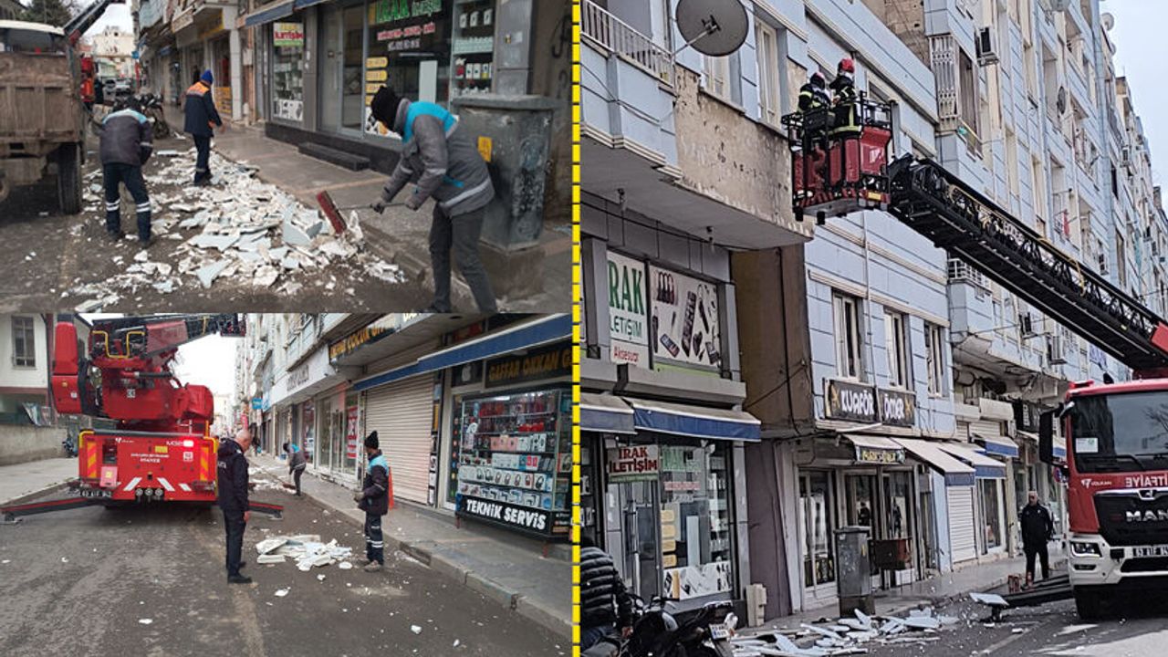 Şanlıurfa’nın Birecik ilçesinde 10 Temmuz Caddesi’nde, binaların dış cephelerinde yer alan ve düşme riski taşıyan kaplamalar, belediye ekiplerinin titiz çalışmasıyla sökülüyor. Vatandaşların can güvenliğini ön planda tutan çalışma, itfaiye ve zabıta eşgüdümüyle yürütülüyor.