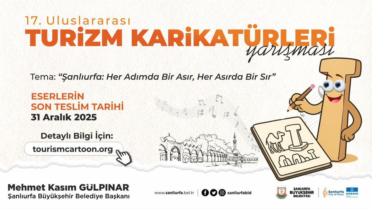 Şanlıurfa Büyükşehir Belediyesi’nin destekleriyle düzenlenen 17. Uluslararası Turizm Karikatürleri Yarışması için başvurular başladı. Bu yıl “Şanlıurfa: Her Adımda Bir Asır, Her Asırda Bir Sır” temasıyla gerçekleştirilen yarışmaya eser göndermek isteyen karikatürcüler, çalışmalarını 31 Aralık 2025 tarihine kadar iletebilecek.