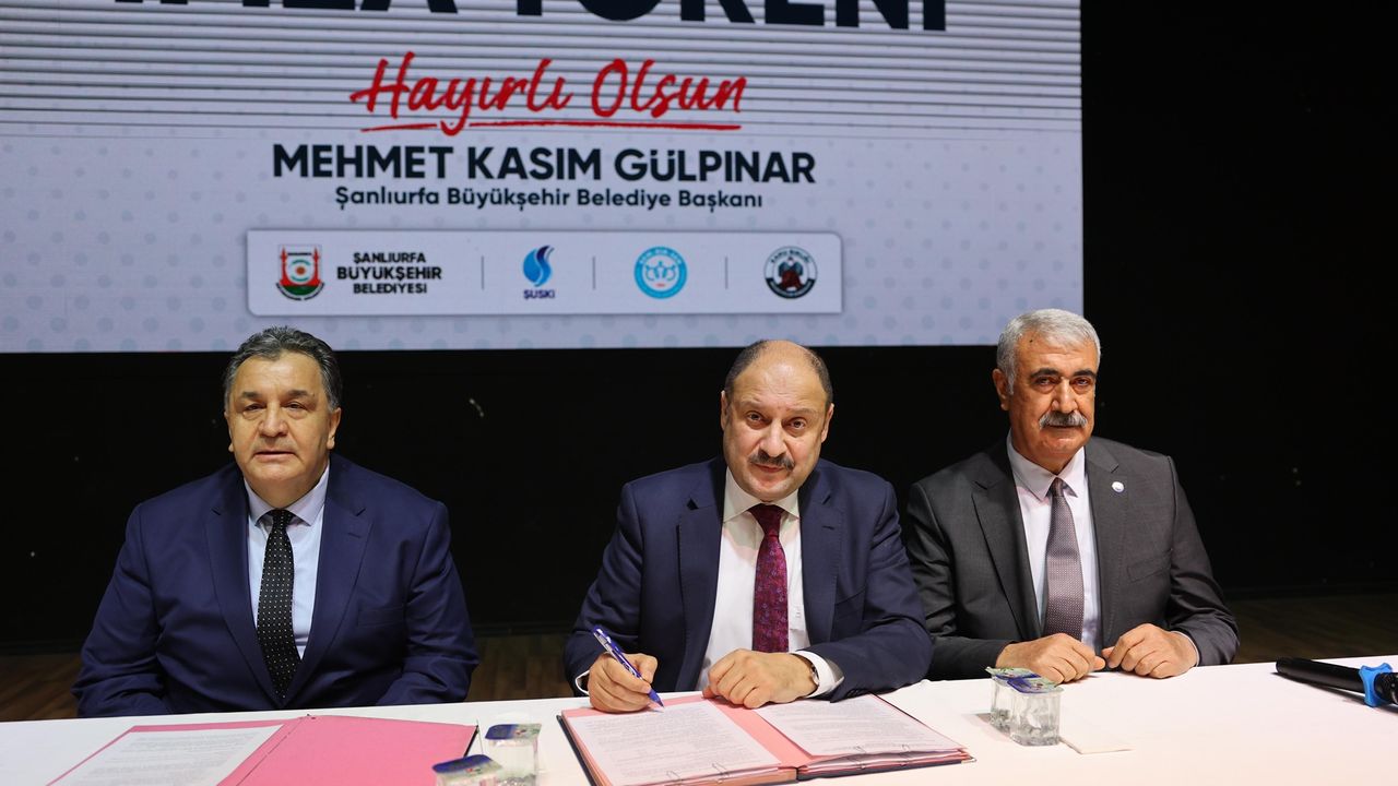 Törende konuşan Başkan Mehmet Kasım Gülpınar, çalışanların haklarını gözeten ve emeği merkeze alan bir yönetim anlayışı benimsediklerini belirterek, önemli bir adım daha attıklarını söyledi. Bu kapsamda Şanlıurfa Büyükşehir Belediyesi ile Memur-Sen Konfederasyonuna bağlı BEM-BİR-SEN arasında Sosyal Denge Sözleşmesi imzalandığını ifade eden Gülpınar, sözleşmeden 433 memurun faydalanacağını açıkladı.