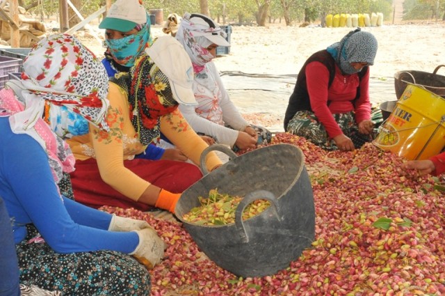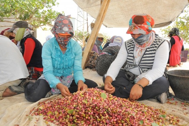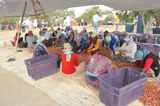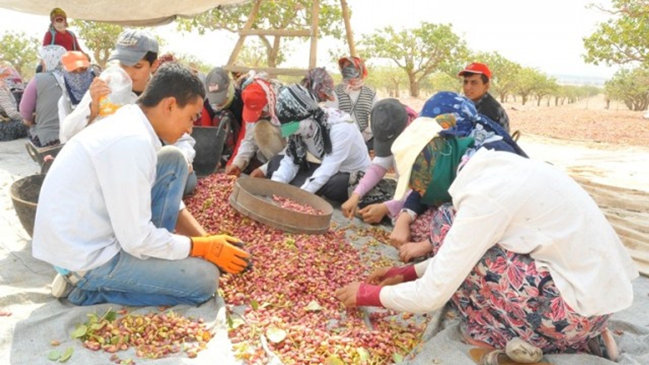 Birecik'te fıstık hasadı
