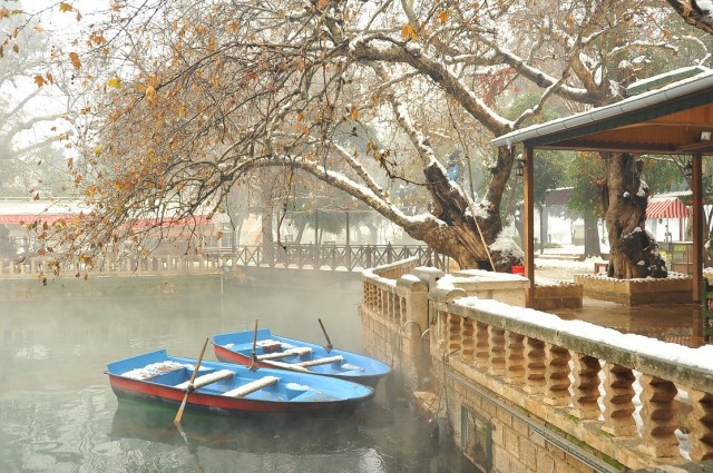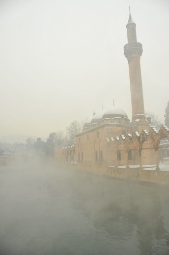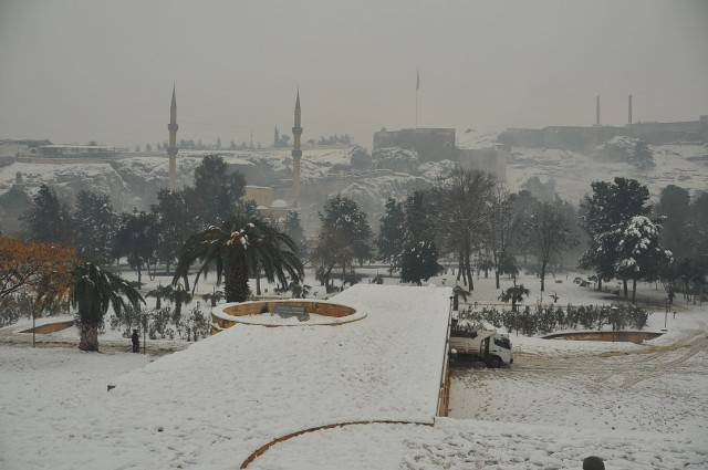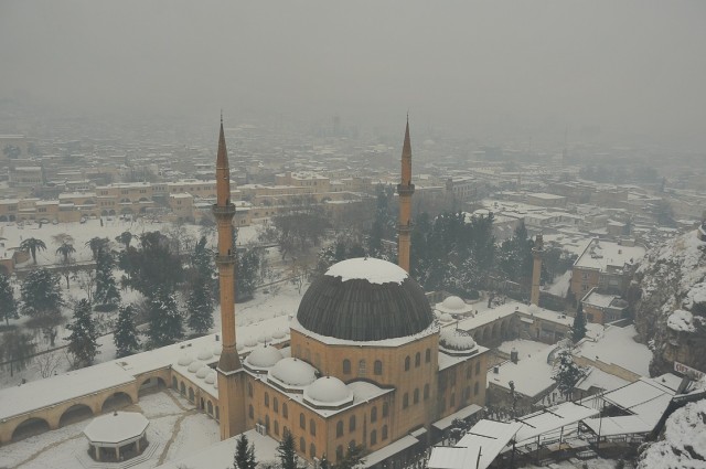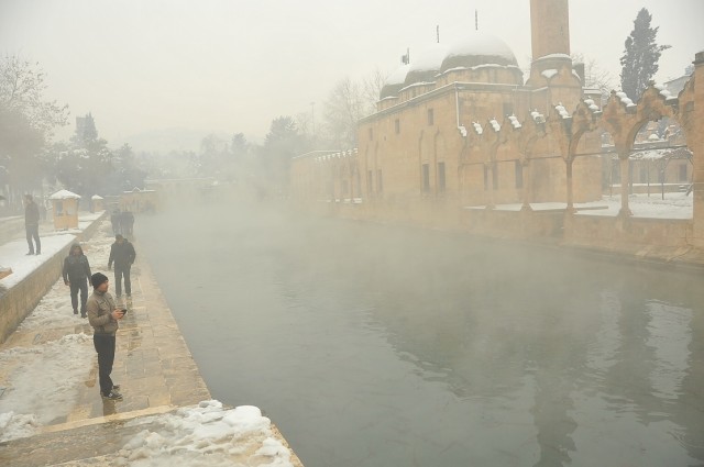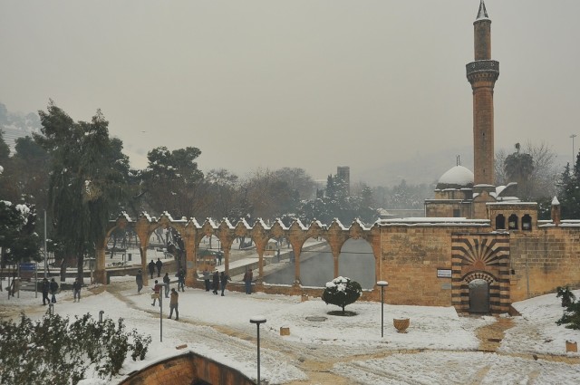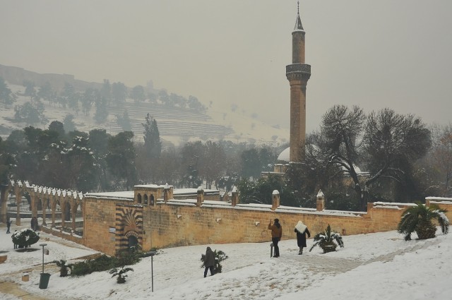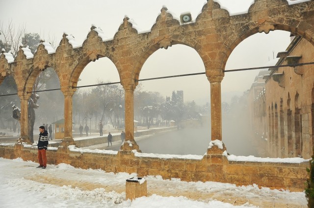 İşte Uğur Budak’ın objektifinden Balıklıgöl ve Urfa Kalesi’nden kar manzaraları…