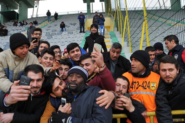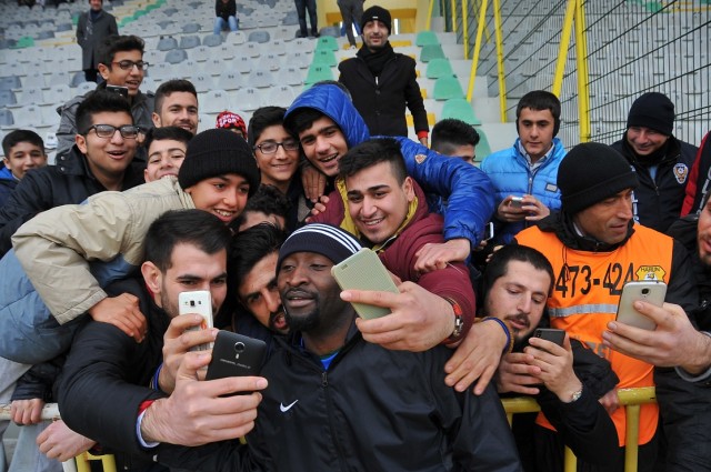 Urfaspor'un yeni transferi Lomana Lualua, taraftarlarla selfie çekti.
