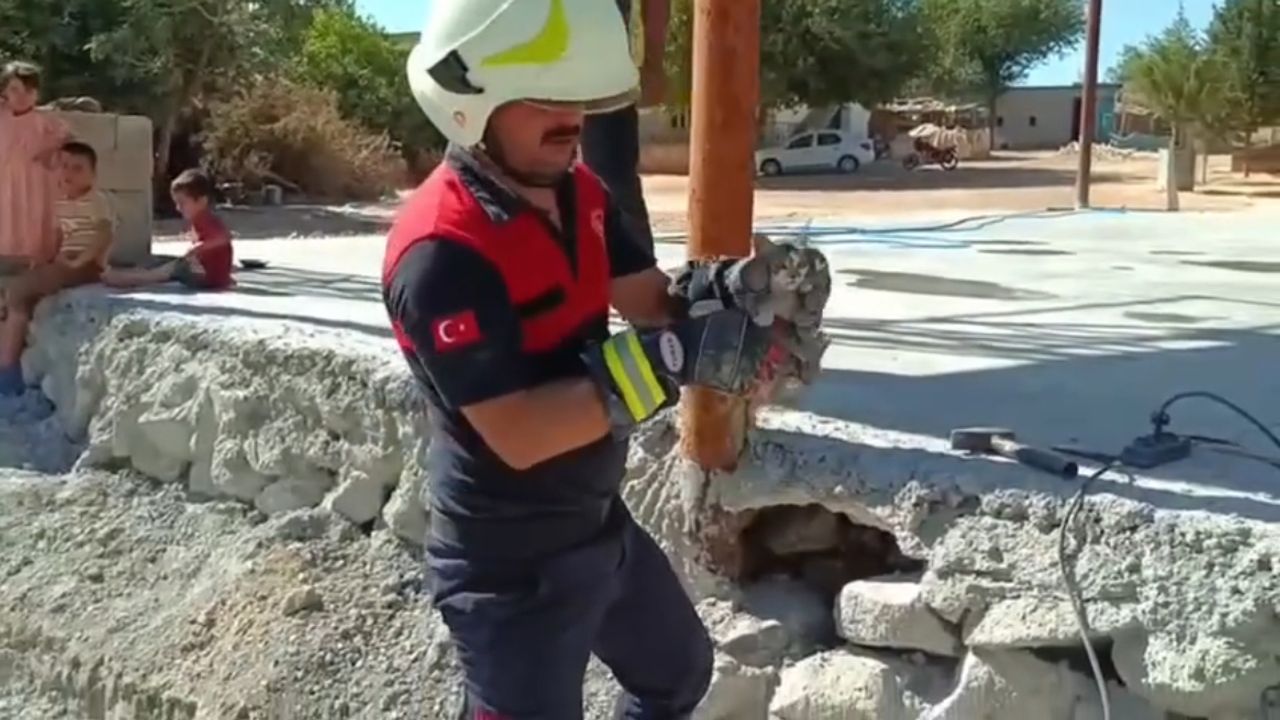 İhbar üzerine olay yerine sevk edilen itfaiye ekipleri, yavru kedilerin sesini takip ederek konumlarını belirledi. Mahalle halkının da yardımıyla beton dikkatli bir şekilde kırıldı ve yavru kediler sağ salim kurtarıldı.