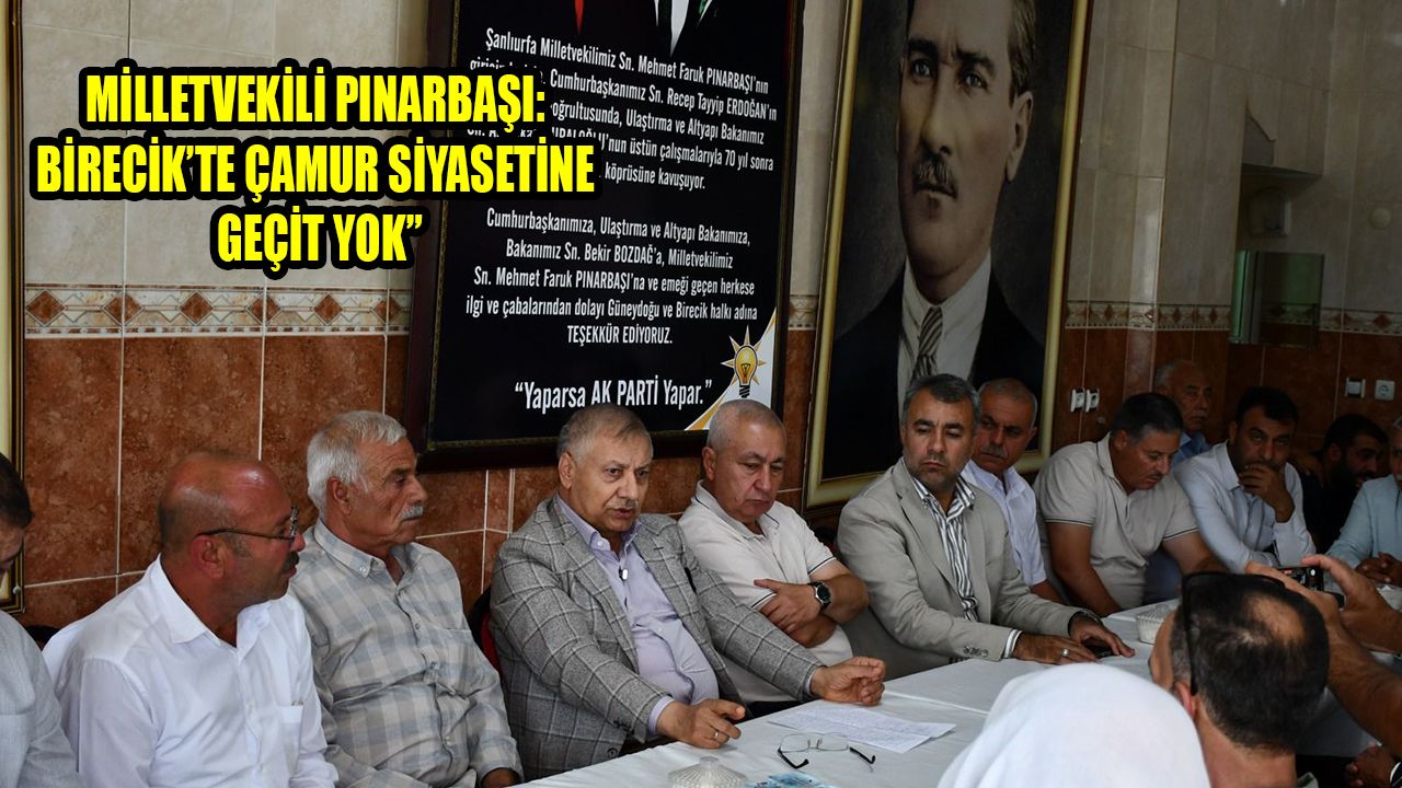 AK Parti Şanlıurfa Milletvekili Av. M. Faruk Pınarbaşı, AK Parti Birecik İlçe Başkanlığı binasında muhtarlar, meclis üyeleri ve vatandaşlarla buluştu. Coşkulu kalabalığın sık sık tezahüratlarla kestiği konuşmasında Pınarbaşı, “Biz sorun üretmeye değil, sorun çözmeye geldik. Alnımız açık, başımız dik. Halkımız müsterih olsun” dedi.
