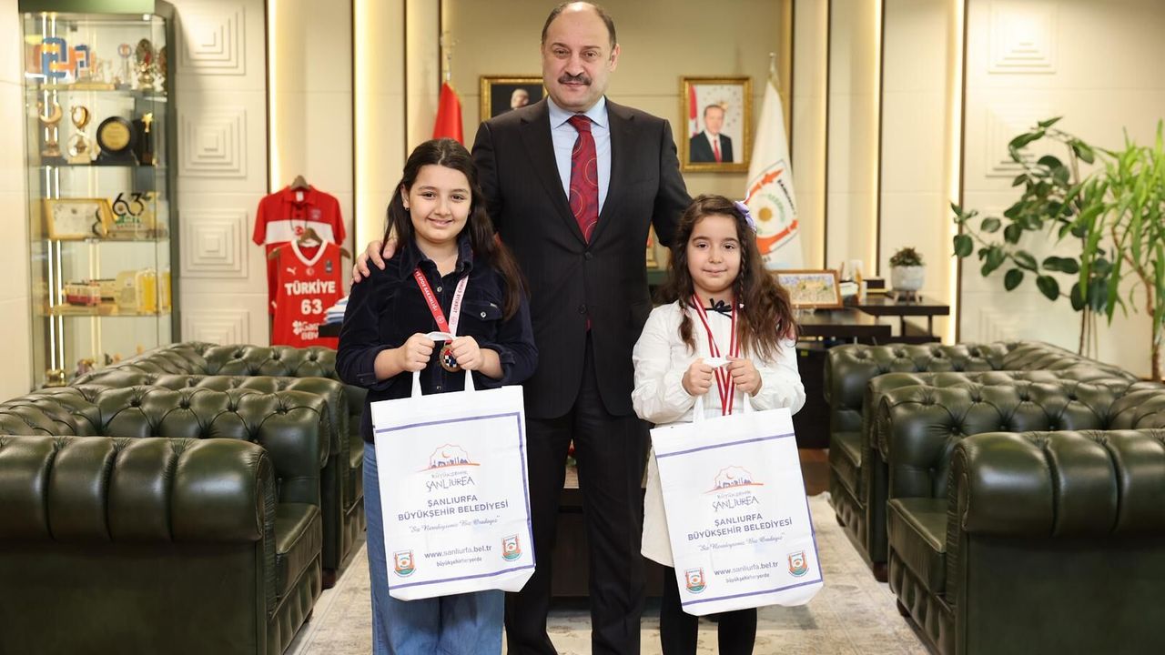 Şanlıurfa Büyükşehir Belediye Başkanı Mehmet Kasım Gülpınar, 2026 Türkiye Küçükler ve Yıldızlar Satranç Şampiyonası’nda büyük başarı gösteren genç sporcular Sare Naz Gün ve Erva Öykü Gün’ü makamında kabul etti.