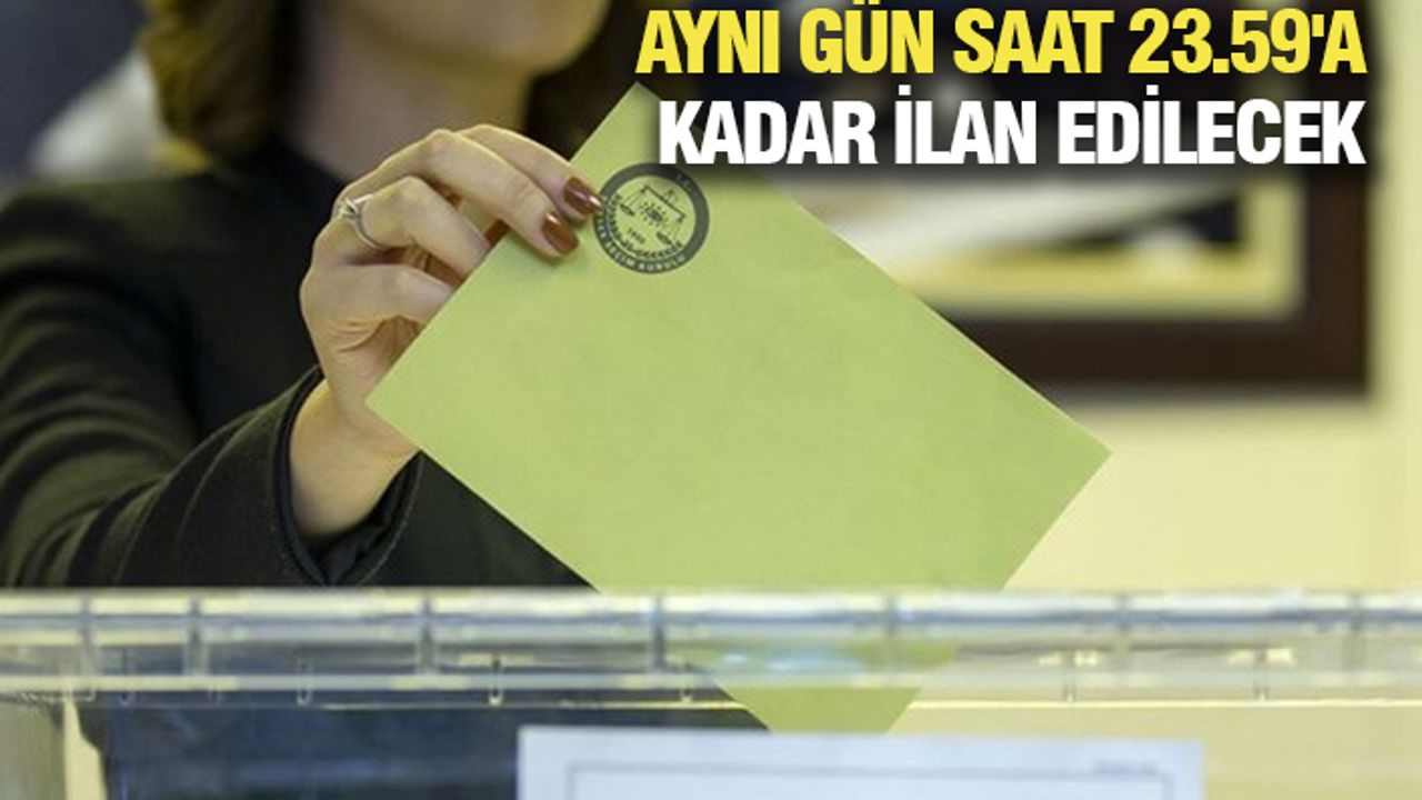 Yüksek Seçim Kurulu Seçim Bilişim Sistemi'ne işlenen oy sayıları ve sandık sonuç tutanaklarını eş zamanlı olarak siyasi partilere yayınlayacak. Tüm bu sürecin sonunda geçici sonuçlar da ortaya çıkacak.