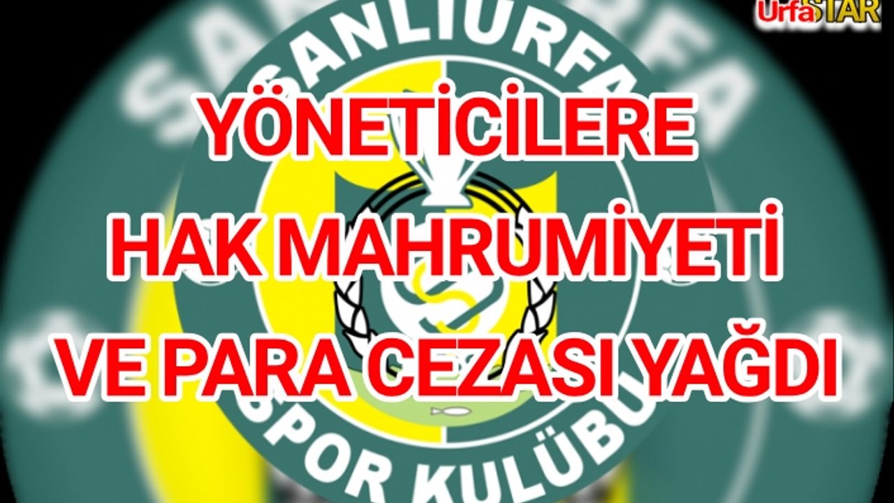 Şanlıurfaspor çok sayıda yöneticinin bulunduğu ceza listesi TFF tarafından yayınlandı. PFDK sevk edilen bazı futbolcular ve yöneticiler toplamda 100 bin TL'ye yakın para cezası aldı.