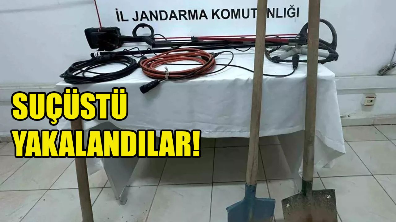 Çevrede yapılan incelemede ise 2 adet detektör, 2 adet kürek, 2 adet kazma, 2 adet kablo ile 1 adet define arama tarama malzemesi ele geçirildi.