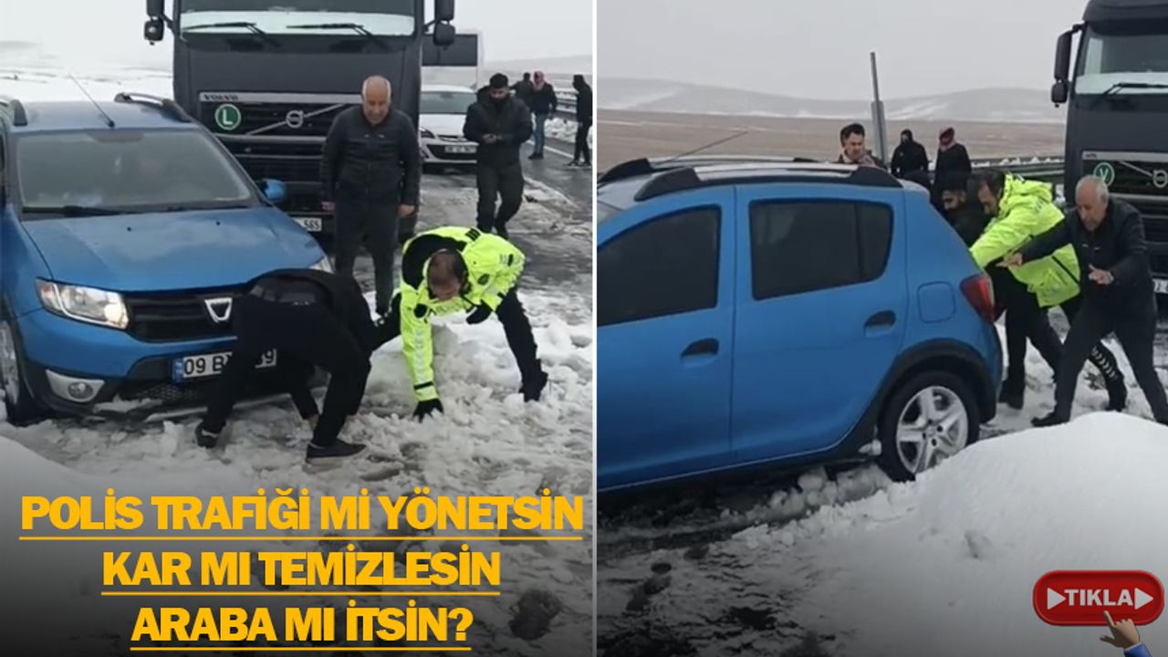 Bir trafik polisinin, kardan dolayı ilerleyemeyen aracın önünü elleriyle temizlediği, ardından yetmeyince aracı iterek güvenli şekilde yola çıkmasını sağladığı anlar, izleyenlerin içini ısıttı. Soğuk havaya ve zorlu şartlara aldırış etmeyen ekipler, sürücülerin mağduriyet yaşamaması için büyük çaba gösterdi.